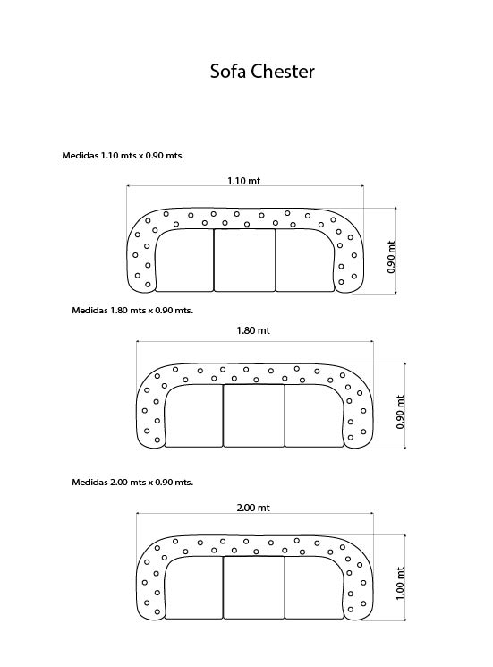 Terminación: Capitoné artesanal y tachas plateadas, costuras reforzadas y cierre en almohadones.
